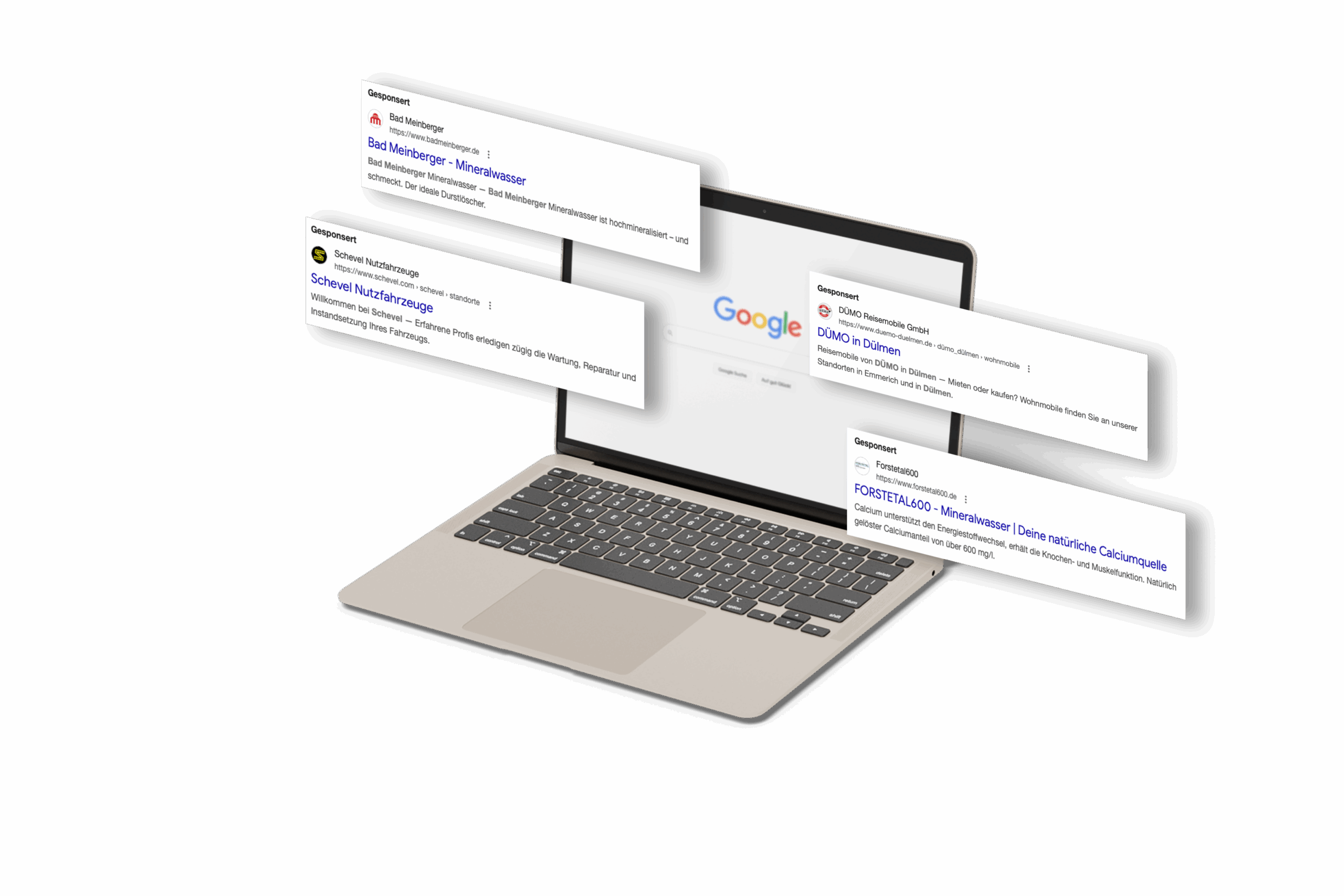 Sie wollen, dass Ihre Angebote gesehen werden? Mit Google Ads bringt unsere Agentur Ihre Produkte oder Dienstleistungen zu potenziellen Kund:innen– schnell, zielgerichtet und effizient.